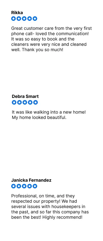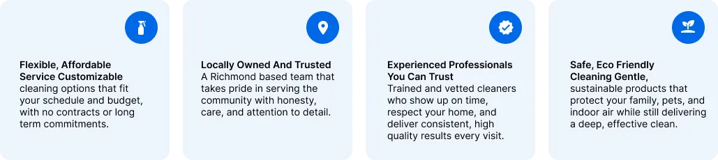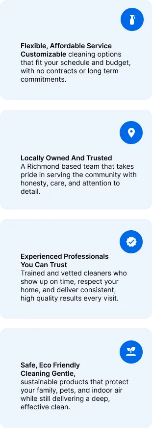• Detailed cleaning of kitchens, bathrooms, floors, baseboards, and high touch areas